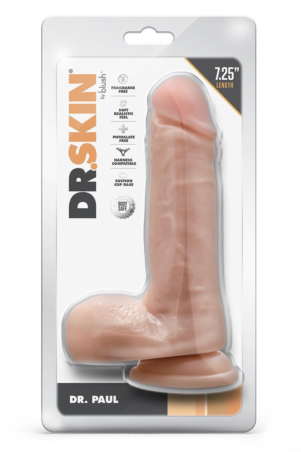 Телесный фаллоимитатор Dr. Paul. Податливый ствол, присоска в основании.