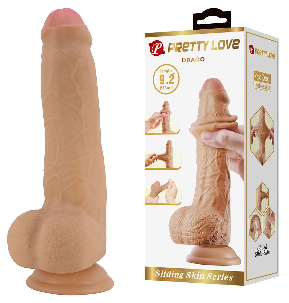 Телесный фаллоимитатор с подвижной кожей Draco — 23,3 см.