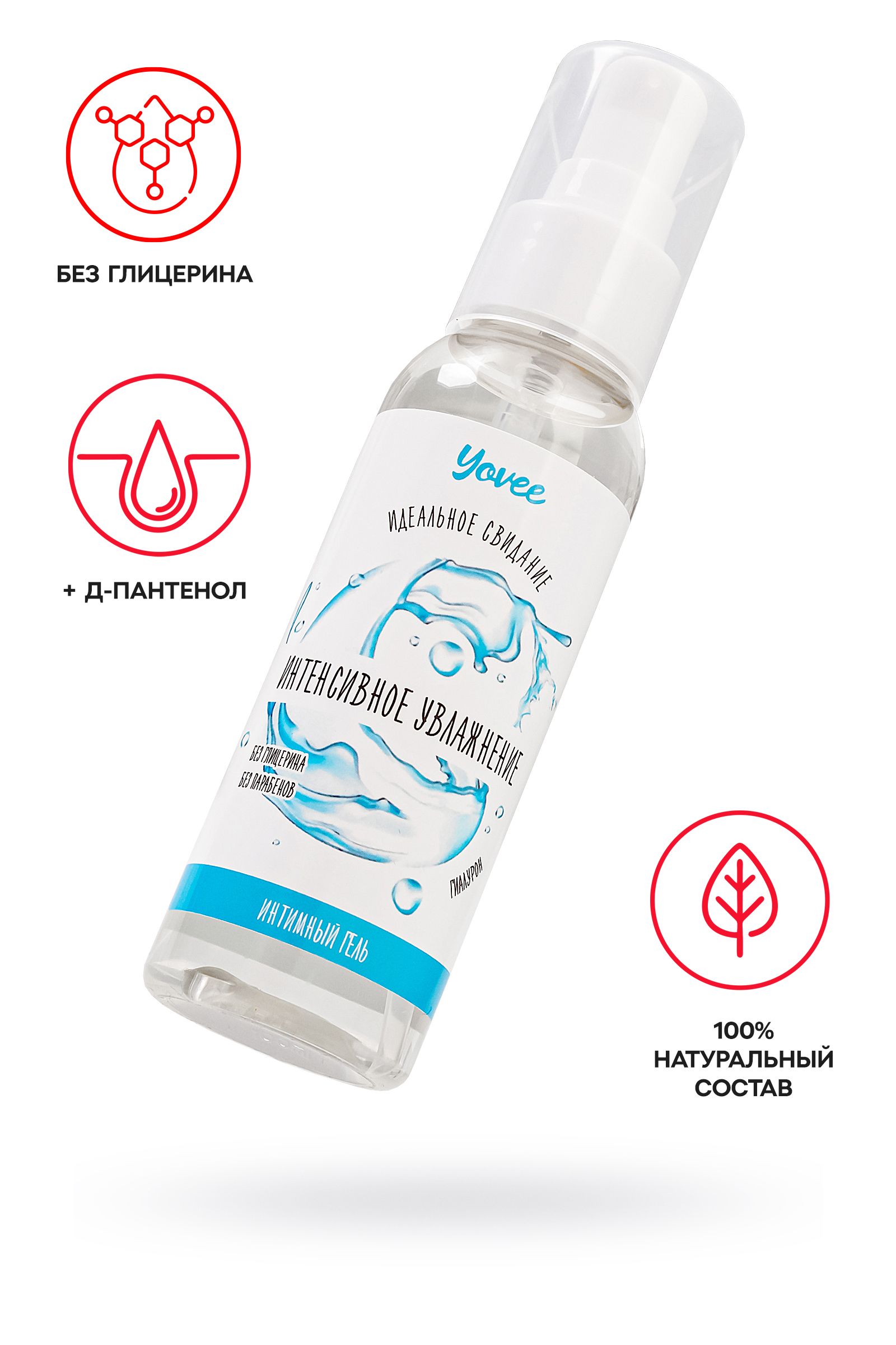 Интимный гель Yovee «Интенсивное увлажнение» восполняет уровень естественной смазки, создает мягкое и комфортное скольжение без ощущения липкости. Благодаря натуральному составу смягчает и увлажняет, улучшает эластичность кожи и слизистой, снимает раздражение, устраняет сухость влагалища. Легко смывается водой, не оставляет следов на одежде и постельном белье. Подходит как для вагинального, так и для орального секса. Совместим со всеми видами презервативов и игрушек для взрослых. Простой и безопасный состав: вода гидроксиэтилцеллюлоза — стабилизатор эмульсий, регулятор вязкости Д-пантенол и гиалуроновая кислота препятствуют потере влаги, защищают слизистые, запускают процесс регенерации тканей сорбат калия и бензоат натрия – безопасные пищевые консерванты, разрешенные в натуральной и органической косметике лимонная кислота помогает поддерживать оптимальный уровень рН, является естественным консервантом.