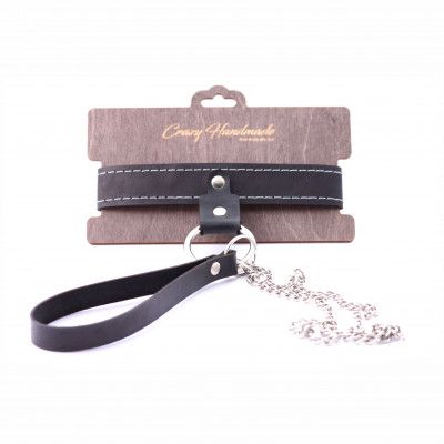 Узкий однослойный ошейник с поводком. Ошейник выполнен из натуральной кожи и имеет кольцо для крепления поводка. Ширина ошейника — 3 см. Длина ошейника — 38 см. Длина поводка — 80 см.