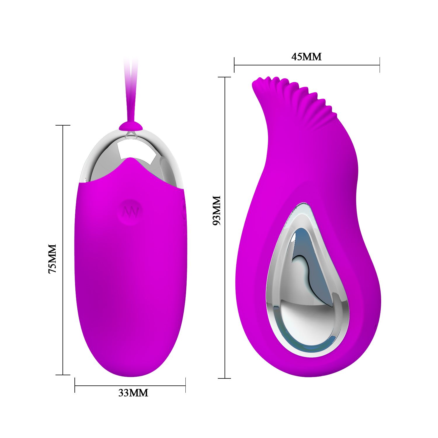 Включите удовольствие вместе с этой уникальной игрушкой! Это мощный эротический вибромассажер имеет уникальное свойство: пульт дистанционного управления игрушки также может быть вибромассажером, пикантный загнутый кончик которого будет стимулировать любую часть тела по вашему выбору. Таким образом вы получаете не одно, а целых два виброяичка! Вы можете попробовать цикл 12 режимов возбуждающей вибрации и выбрать самую волнующую вас настройку, расположив игрушку на вашей эрогенной зоне. Если вы не хотите наслаждаться в одиночестве — предложите попробовать забавы с виброяйцом вашему любимому мужчине. Беспроводной пульт дистанционного управления, не стесняя движения, позволит наслаждаться игрой в любом месте. Рабочая длина — 7,5 см. Длина вибропульта — 9,3 см., ширина — 4,5 см.