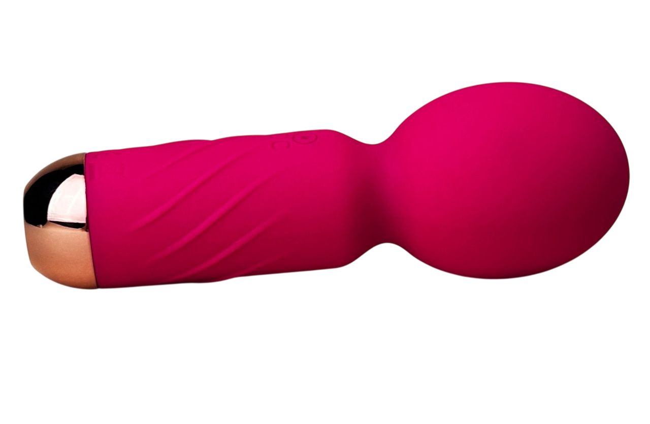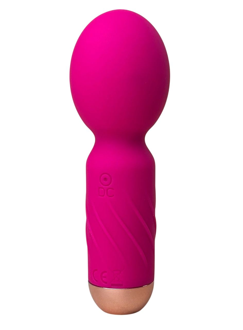 Ярко-розовый мини-wand вибратор для стимуляции эрогенных зон. Имеет 10 режимов вибрации.