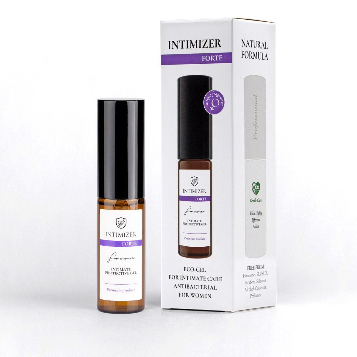 Новое поколение средств для интимной гигиены от бренда INTIMIZER. Богатый натуральный состав — не имеет аналогов по количеству и концентрации активных компонентов! Комплексно выполняет все необходимые функции по поддержанию интимного здоровья и комфорта. Восстанавливает микрофлору. Оказывает длительное освежающее и ухаживающее действия, а также имеет дополнительные терапевтические свойства. Одобрен гинекологами. Эко-гель INTIMIZER на 100% заменяет привычный интимный уход. INTIMIZER FORTE – это усиленная высококонцентрированная формула широкого спектра действия, профессиональная линия средств бренда INTIMIZER. Более быстрая и надежная защита против широкого спектра патогенных микроорганизмов за счет увеличенной (на 50%) концентрации Smart частиц серебра, 30ppm. Ускоренное (на 35%) восстановление здорового микробиома интимной зоны и улучшенная профилактика возникновения дисбактериоза за счет комплекса пребиотиков и постбиотиков. В 2 раза более интенсивный увлажняющий эффект за счет еще одного нового элемента формулы – водосберегающей молекулы Aquaxyl. Еще больше привлекательности с двойной концентрацией феромона Iso E Super. Идеален для ежедневного применения и в качестве SOS-средства. Наносится и не требует смывания. Обеспечивает длительный комфорт и защиту. Предотвращает воспалительные процессы и инфекции, развитие дисбактериоза и вагинита. Помощь от молочницы. Заживляет микротрещинки, способствует ускоренному восстановлению после родов и операций. Спасает от сухости — увлажняет, питает, поддерживает эластичность и упругость. Деликатно отбеливает и омолаживает, сохраняя интимную эстетику. Гель на водной основе улучшает комфорт романтических отношений. Активные компоненты: Smart частицы серебра Молочная кислота Комплекс пребиотиков и постбиотиков (PREBIULIN, INULIN, WORESANA), Д-пантелол Fucogel, Критмум морской, Hydrovance, Биосахаридная смола, Гидролат календулы Гидролат Ромашки. Не содержит синтетических отдушек. Имеет чувственный аромат пачули.