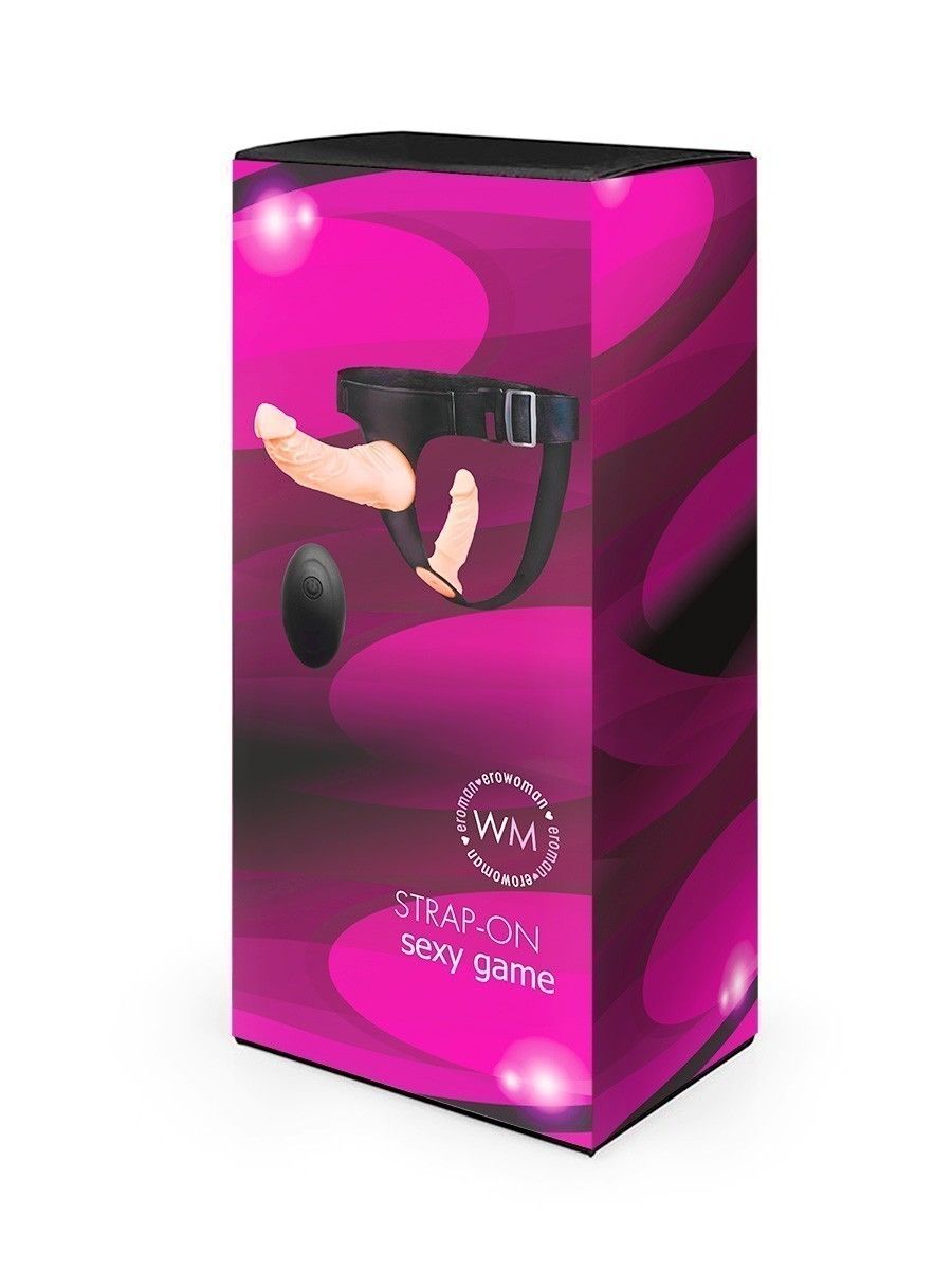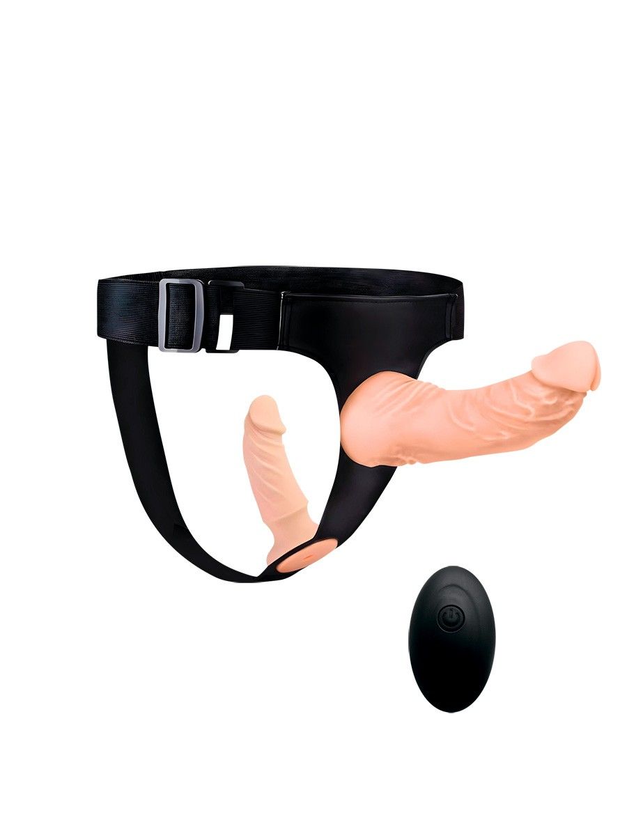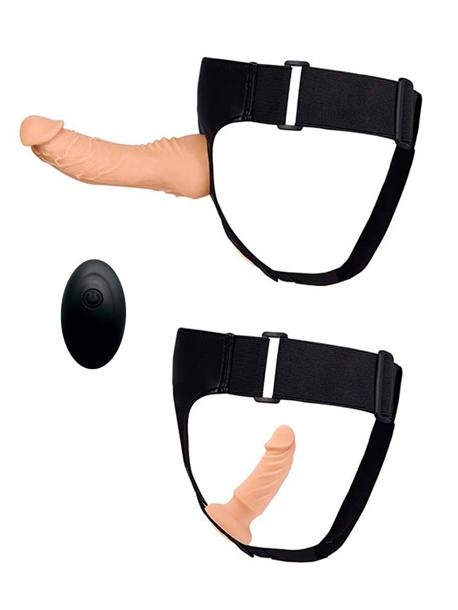 Оригинальная секс-игрушка подарит разнообразные эротические удовольствия обоим партнёрам. Режимы вибрации повысят уровень удовольствия и доведут до пика наслаждения. В комплект входят: два съёмных реалистичных вибратора, удобные трусики с эластичными ремнями, два съёмных коннектора, дистанционный пульт управления, USB-провод. Для использования в качестве страпона вибраторы накручиваются на вставленные в отверстия трусиков коннекторы. При этом удовольствие получают оба партнёра. Также вибромассажёры могут использоваться в качестве самостоятельных секс-игрушек для всех видов интимной близости. Вибратор большего размера гнётся в разные стороны. 10 режимов вибрации. Размер трусиков может регулироваться. Ремни хорошо тянутся, позволяя использовать изделие людям с разными параметрами тела. Длина большой насадки — 20 см, диаметр — 5 см. Длина малой насадки — 12,5 см, диаметр — 3,2 см.