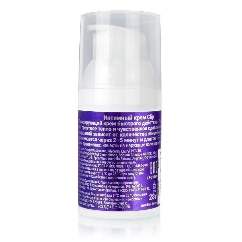 Возбуждающий крем быстрого действия Clip разработан специально для женского удовольствия. Во время использования приятно разогревает и дарит ощущение сдавливания в месте нанесения. Эффект усиливается через 2-5 мин. и длится 15-20 мин. Яркость ощущений зависит от количества крема. Чем больше его наносится, тем сильнее эффект. Крем Clip имеет нежную приятную консистенцию, увлажняет и тонизирует.