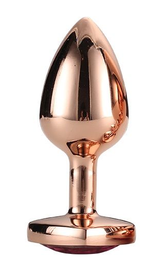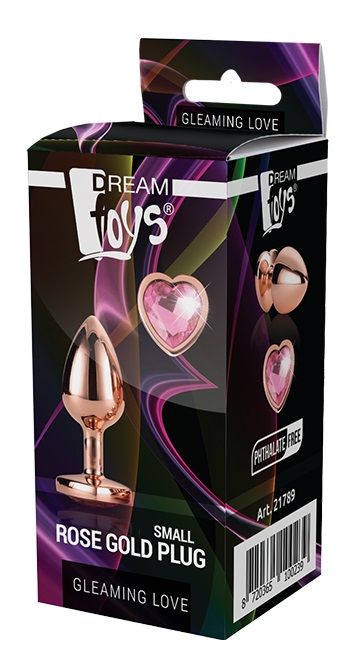 Золотистая анальная втулка с кристаллом-сердечком розового цвета — 7,1 см.